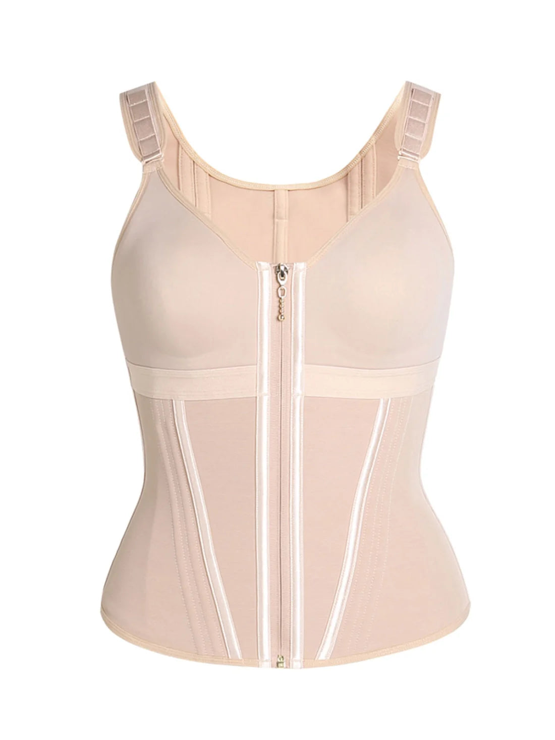 This garment is recommended for large and heavy breasted women, who want to control their abdomen and have a support.