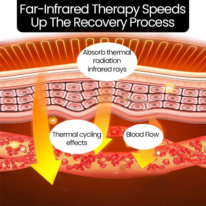 "Far infrared therapy employs far-infrared radiation, which is a type of light invisible to the human eye but can be felt as heat. 'Far' describes where the wavelengths fall on the light spectrum. This natural, drug-free therapy method uses low-temperature heat to penetrate the body's surface area and deliver oxygen to tissues. It can reduce pain and inflammation, improve blood flow and nitric oxide production, and speed up the healing process of muscles and chronic diseases without irritating or overheating the skin."