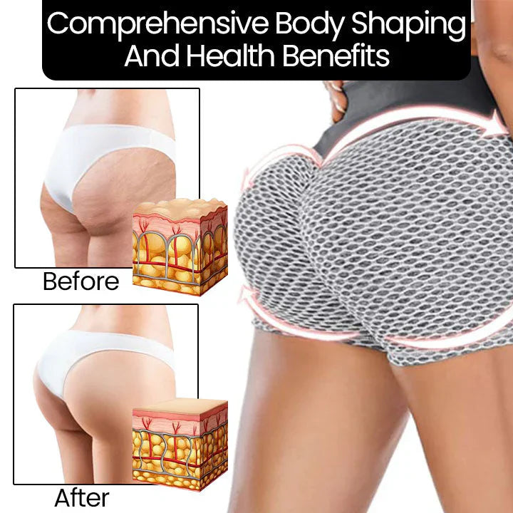 "The Ion Shaping Shorts massage and release ions that stimulate collagen production, eliminating loose skin and excess fat from the buttocks. As a result, sagging and misshapen buttocks can be firmed and lifted! The shorts contain tourmaline minerals (valuable natural minerals) that stimulate the abdominal and hip muscles through acupressure, enhancing blood circulation and relaxation. They are intelligently designed, so you look smooth and shaped from every angle. When worn, they are skin-friendly and breathable, four times lighter than regular shorts, but with ten times the body shaping effect - you can create the perfect body curvature right at night!"