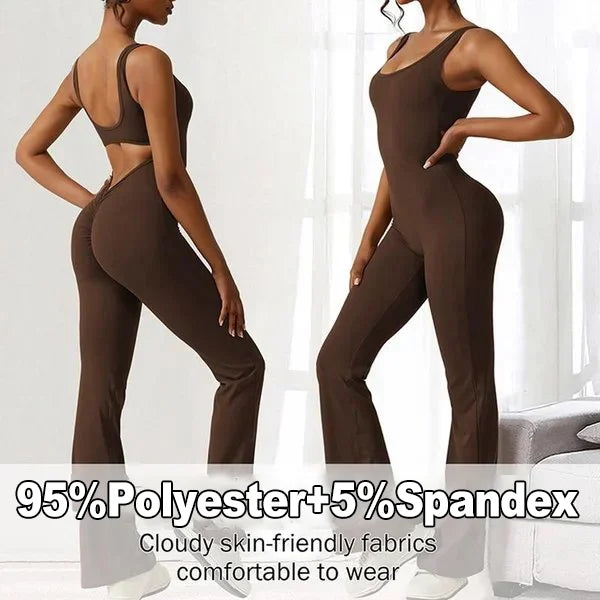 Scrunch butt long flare pants jumpsuits enhancing your body natural sexy shape, just like a juicy peach, gusseted crotch for greater freedom of movement and flexibility, squat proof athletic jumpsuit,the design of micro-flare pants can make you look taller and slender